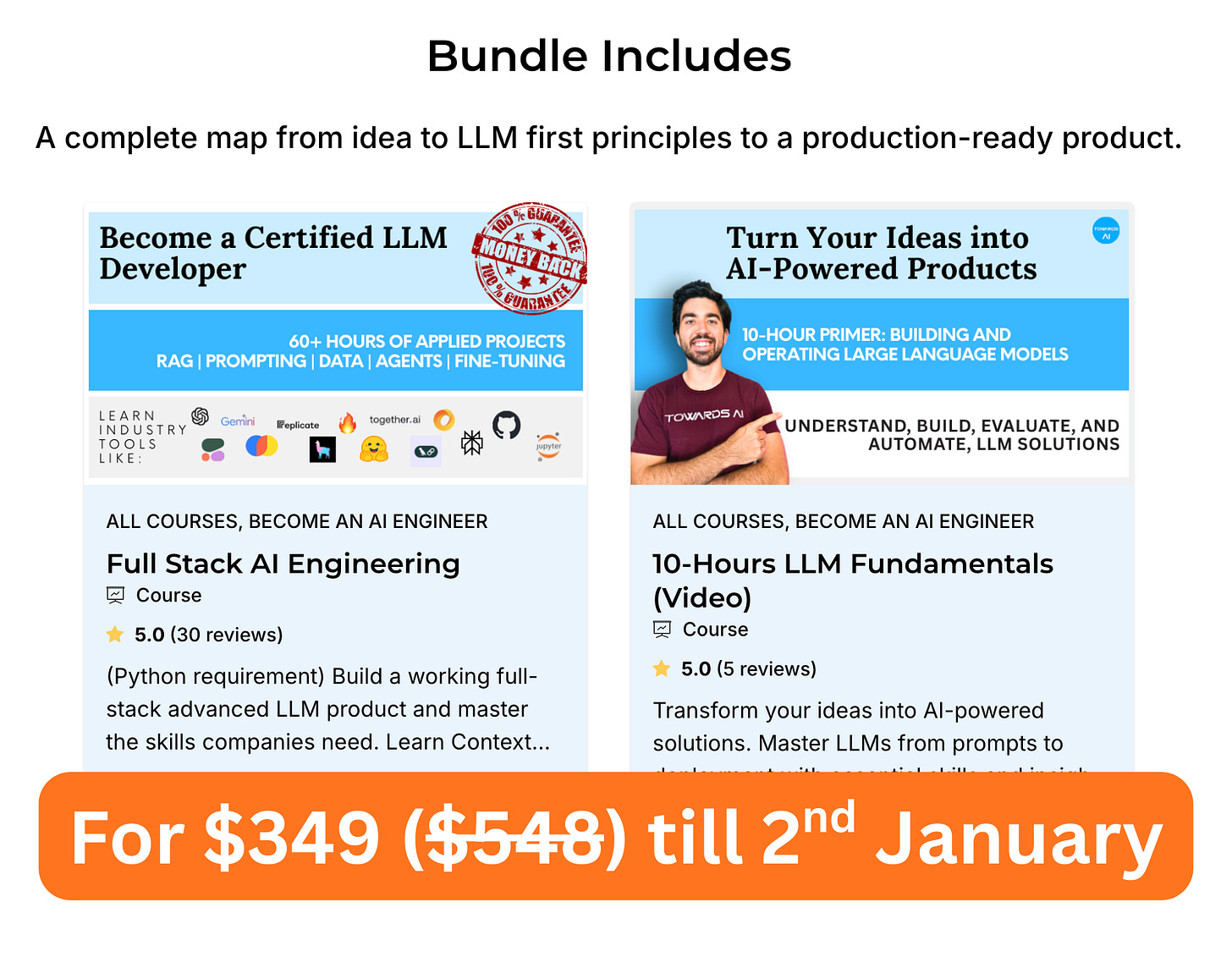 Two of our most loved courses, bundled for one outcome: from first principles to a production-ready LLM product.