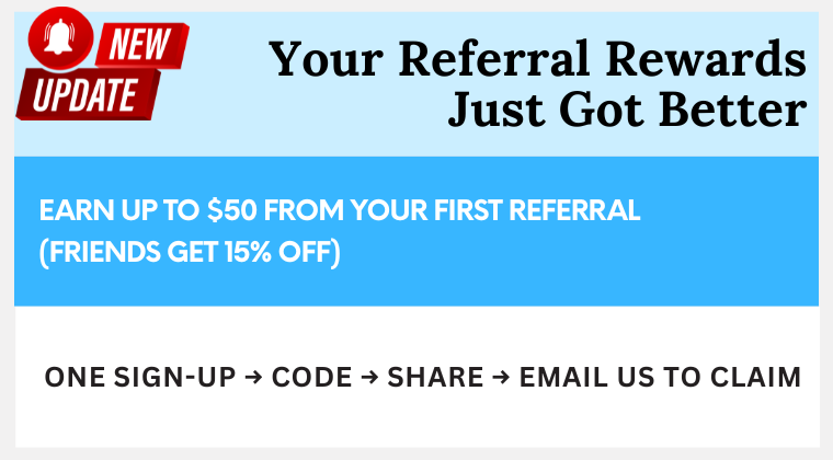 Earn up to $50 from your first referral (friends get 15% off)