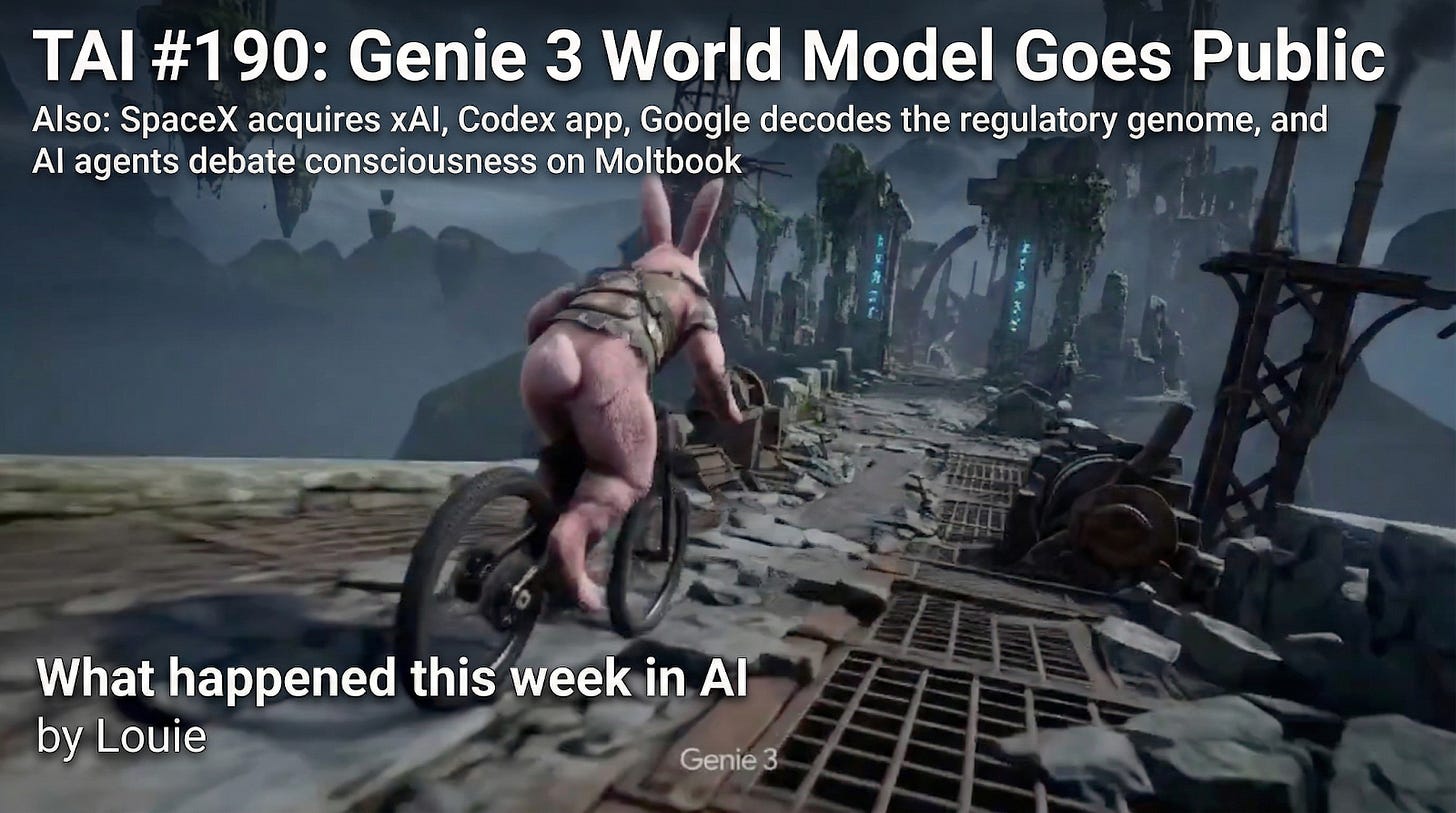 Also: SpaceX acquires xAI, Codex app, Google decodes the regulatory genome, and AI agents debate consciousness on Moltbook.