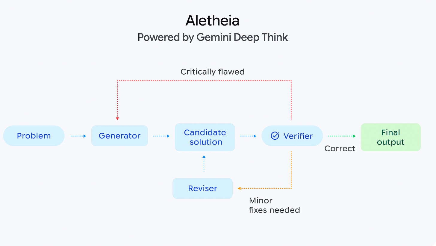 2. Google DeepMind introduces Aletheia, a specialized AI agent designed to bridge the gap between competition-level math and professional research. It is powered by an advanced version of Gemini Deep Think and an agentic loop consisting of a Generator, Verifier, and Reviser.